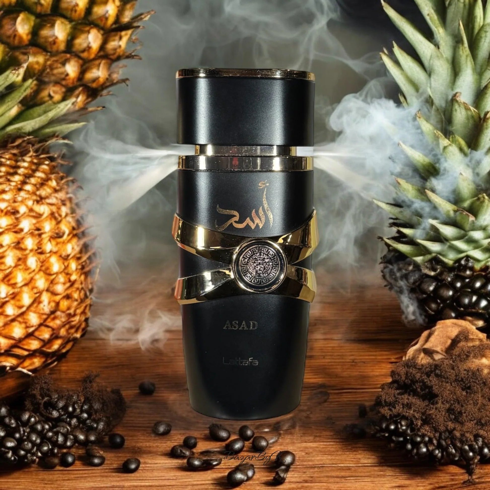 Asad by Lattafa Perfumes is a Amber fragrance for men. Asad was launched in 2021. Top notes are Black Pepper, Pineapple and Tobacco; middle notes are Patchouli, Coffee and Iris; base notes are Vanilla, Amber, Dry Wood, Benzoin and Labdanum.
