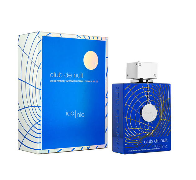 Club de Nuit Blue Iconic by Armaf is a fragrance for men. This is a new fragrance. Club de Nuit Blue Iconic was launched in 2022. Top notes are Grapefruit, Lemon, Mint, Pink Pepper and Coriander; middle notes are Ginger, Melon, Jasmine and Nutmeg; base notes are Woody Notes, Incense, Sandalwood, Amber, Cedar, Patchouli and Labdanum.