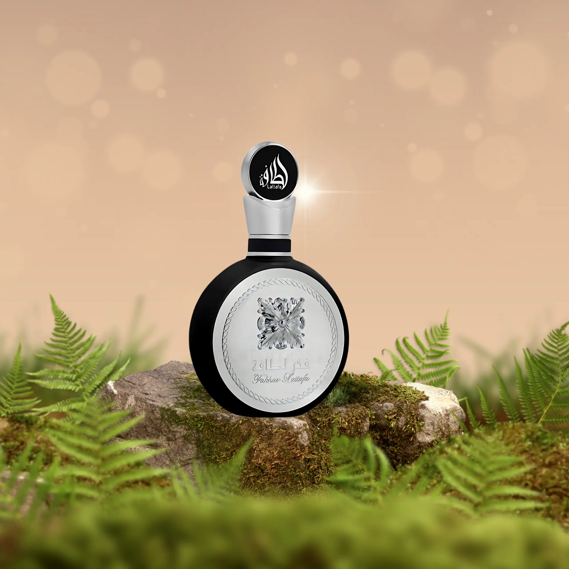 Fakher Lattafa highlights a fougere - woody union along with elegant notes of violet leaf, masculine nutmeg and bergamot. The heart accentuates clary sage, tart geranium and orange blossom finely spiced with coriander, while tonka, patchouli, vanilla and sandalwood linger in trail, which attract our attention with strong creamy shades.